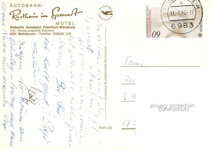 73864894 alte Postkarte Rohrbrunn Autobahn Rasthaus im Spessart Terrasse postalisch gelaufen Erhaltung siehe scans [WerneD78] KatCode: 11110009671157