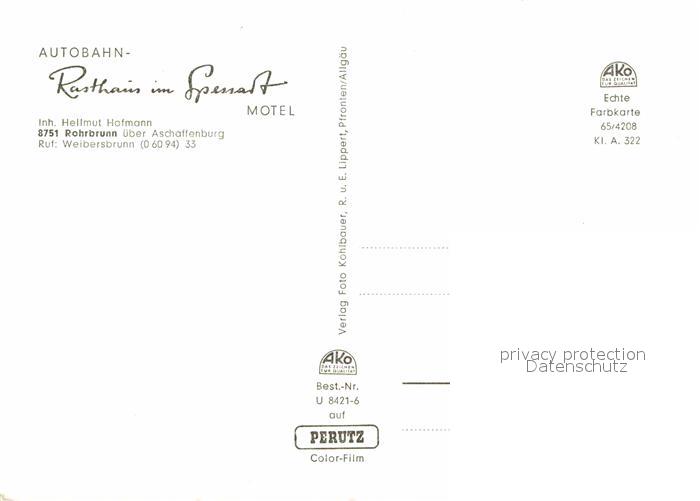 72901940 Rohrbrunn Autobahn Rasthaus im Spessart Wildschweine Rotwild postalisch nicht gelaufen Erhaltung siehe scans [WerneD78] KatCode: 11110009671157