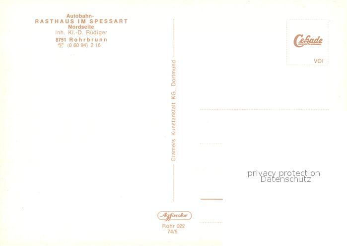 73259925 Rohrbrunn Autobahn-Rasthaus postalisch nicht gelaufen Erhaltung siehe scans [NatalD47] KatCode: 11110009671157