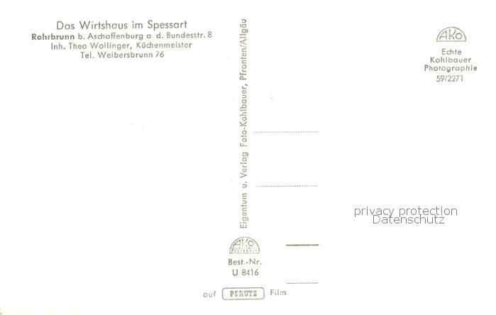 73810092 Rohrbrunn Das Wirtshaus im Spessart postalisch nicht gelaufen Erhaltung siehe scans [FriedD77] KatCode: 11110009671157