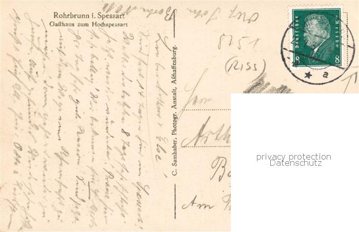 73806896 alte Postkarte Rohrbrunn Gasthaus zum Hochspessart postalisch gelaufen Erhaltung siehe scans [WerneD78] KatCode: 11110009671157