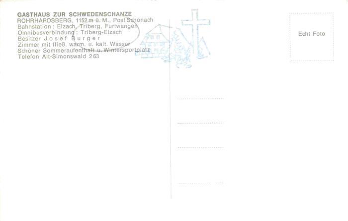 73973716 Rohrhardsberg Schonach Gasthaus Schwedenschanze postalisch nicht gelaufen Erhaltung siehe scans [FriedD77] KatCode: 11110008326055
