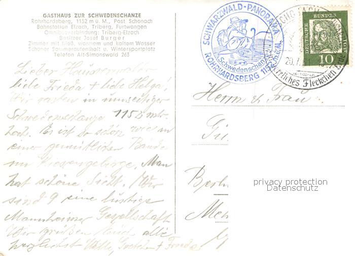 73727686 alte Postkarte Rohrhardsberg Schonach Gasthaus zur Schwedenschanze Gaststube postalisch gelaufen Erhaltung siehe scans [WerneD78] KatCode: 11110008326055