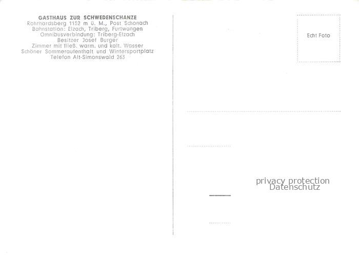 74093865 Rohrhardsberg Schonach Schwarzwald BW Gasthaus zur Schwedenschanze postalisch nicht gelaufen Erhaltung siehe scans [WerneD78] KatCode: 11110008326055