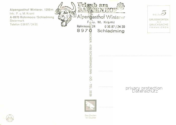 12712492 Rohrmoos Schladming Alpengasthof Winterer postalisch nicht gelaufen Erhaltung siehe scans [AndreD76] KatCode: 11390222061242