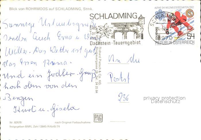 72541101 alte Postkarte Rohrmoos Schladming Blick auf Schladming postalisch gelaufen Erhaltung siehe scans [AndreD76 kt119box] KatCode: 11390222061242