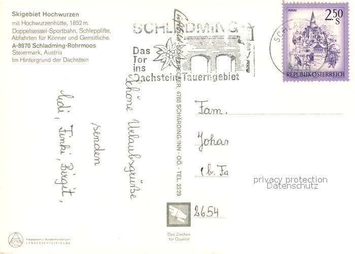 73236491 alte Postkarte Rohrmoos Schladming Fliegeraufnahme Skigebiet Hochwurzen postalisch gelaufen Erhaltung siehe scans [LiesaD40] KatCode: 11390222061242