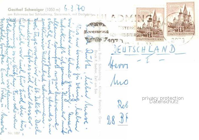 72849637 alte Postkarte Rohrmoos Schladming Gasthof Schwaiger Dachstein postalisch gelaufen Erhaltung siehe scans [KathaD81] KatCode: 11390222061242