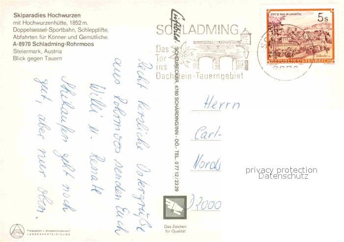 72796252 alte Postkarte Rohrmoos Schladming Hochwurzen Hochwurzenhuette Steinkarzinken Krahbergzinken postalisch gelaufen Erhaltung siehe scans [NatalD47] KatCode: 11390222061242