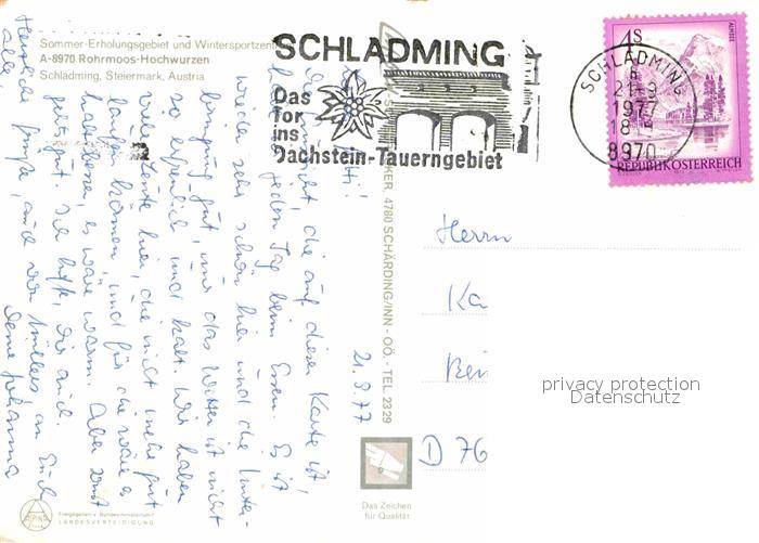 72707048 alte Postkarte Rohrmoos Schladming Panorama mit Hochwurzen Schladminger Tauern Fliegeraufnahme postalisch gelaufen Erhaltung siehe scans [FriedD77] KatCode: 11390222061242