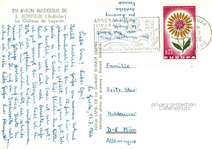 12688605 carte postale Roiffieux Chateau de Lagarde postalisch gelaufen Erhaltung siehe scans [NatalD47] KatCode: 11170007307197
