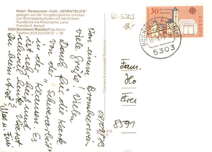 73915205 alte Postkarte Roisdorf Bornheim Panorama mit Siebengebirge Gastraum Freiterrasse postalisch gelaufen Erhaltung siehe scans [FriedD77] KatCode: 11110005382012
