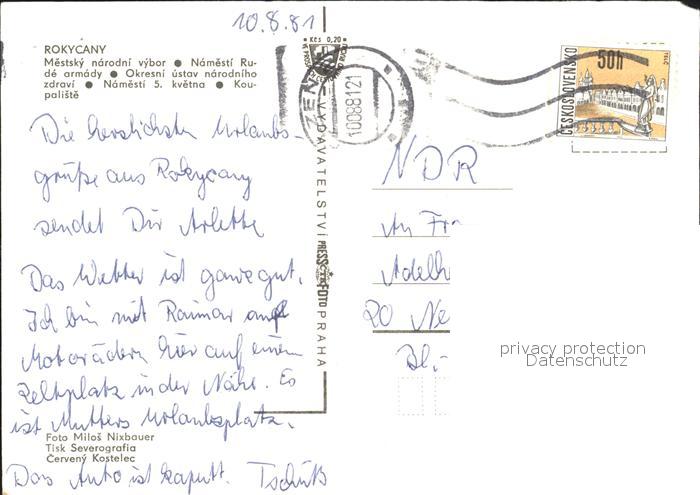 old postcard Rokycany Mestsky narodni vybor Namesti Rude armady postalisch gelaufen Erhaltung siehe scans