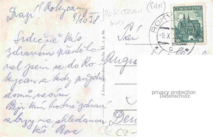 74032564 old postcard Rokycany Rokitzan CZ Panorama postalisch gelaufen Erhaltung siehe scans [WerneD78] KatCode: 11520