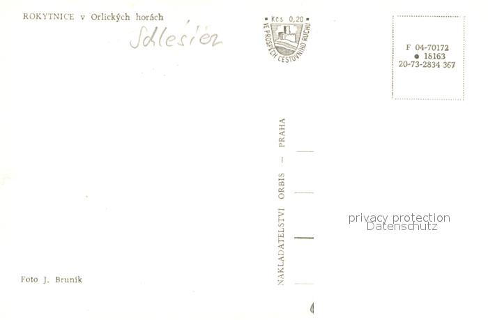 Rokytnice v Orlickych horach Platz Denkmal Brunnen Gasthaus Kirche postalisch nicht gelaufen Erhaltung siehe scans [FriedD77]