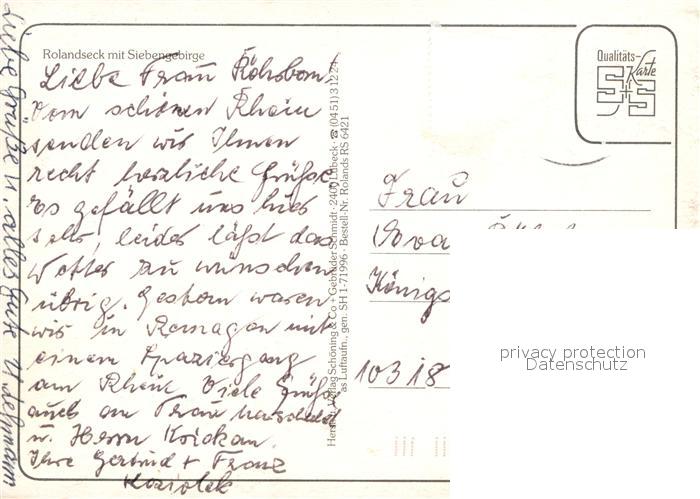 73008426 alte Postkarte Rolandseck Fliegeraufnahme mit Siebengebirge postalisch gelaufen Erhaltung siehe scans [WerneD78] KatCode: 11110007131070
