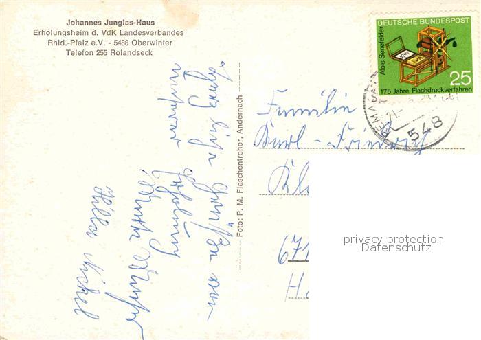 72668405 alte Postkarte Rolandseck Johannes-Jungles-Haus postalisch gelaufen Erhaltung siehe scans [AndreD76] KatCode: 11110007131070