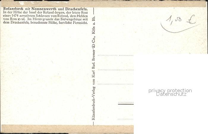 72428899 Rolandseck mit Nonnenwerth und Drachenfels postalisch nicht gelaufen Erhaltung siehe scans KatCode: 11110007131070