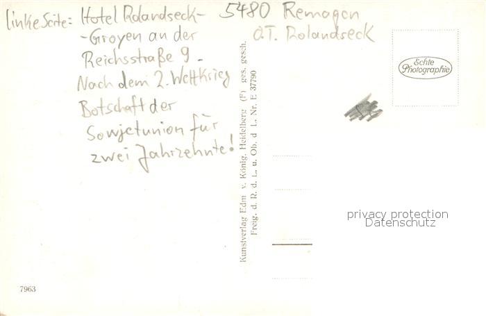 73696087 Rolandseck Rheinpartie mit Hotel Rolandseck und Drachenfels postalisch nicht gelaufen Erhaltung siehe scans [WerneD78] KatCode: 11110007131070