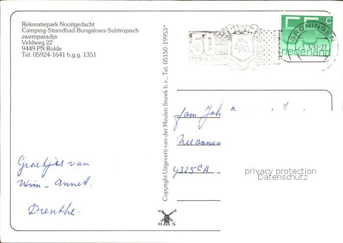 old postcard Rolde Camping Rekreatiepark Nooitgedacht postalisch gelaufen Erhaltung siehe scans