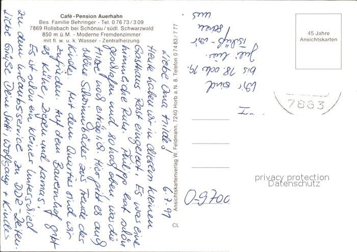 72455737 alte Postkarte Rollsbach Cafe Pension Auerhahn postalisch gelaufen Erhaltung siehe scans KatCode: 11110008336004
