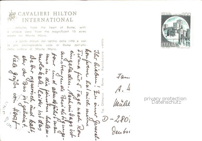 Rom Roma Cavalieri Hilton International Hotel postalisch nicht gelaufen Erhaltung siehe scans
