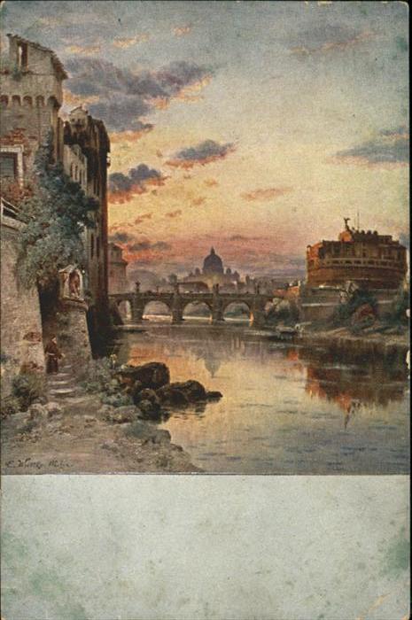 old postcard Rom Roma Engelsburg Tiber Engelsbruecke postalisch gelaufen