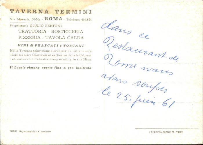 Rom Roma Taverna Termini Trattoria Rosticceria postalisch nicht gelaufen