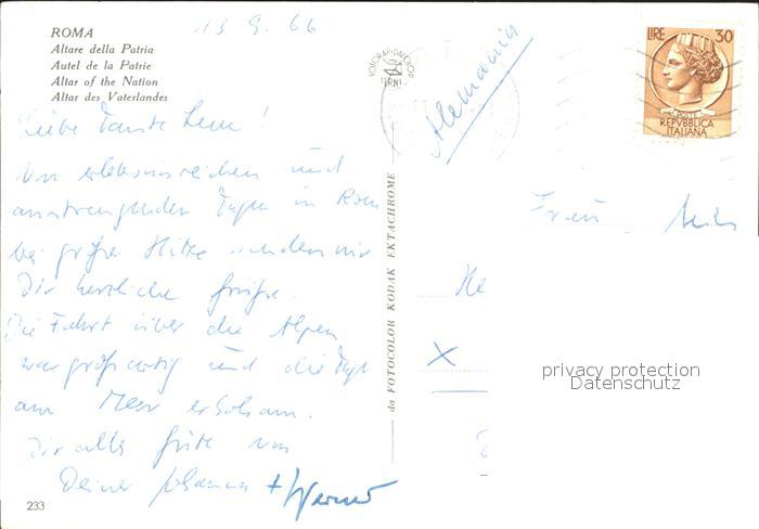 old postcard Roma Rom Altare della Patria postalisch gelaufen Erhaltung siehe scans