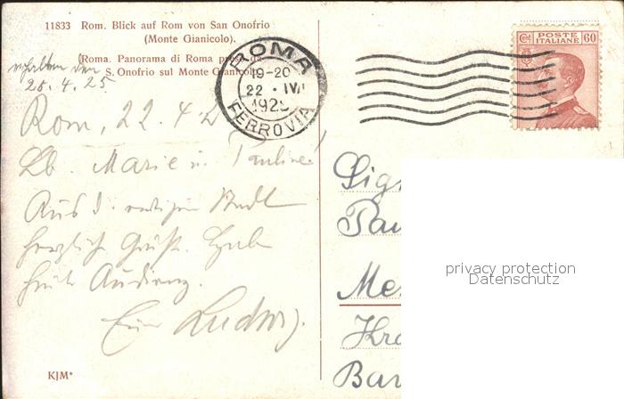 old postcard Roma Rom Blick auf Rom von San Onofrio postalisch gelaufen Erhaltung siehe scans
