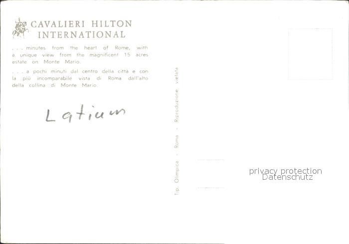 Roma Rom Cavalieri Hilton International postalisch nicht gelaufen Erhaltung siehe scans