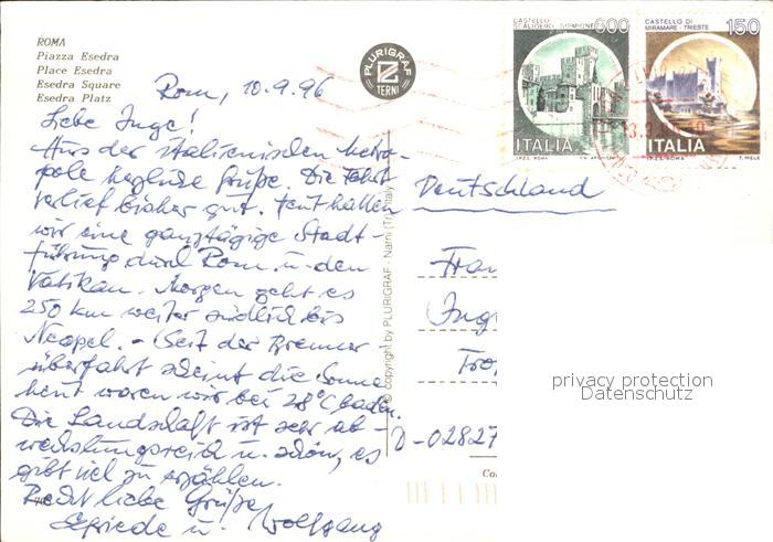 old postcard Roma Rom Esedra Platz postalisch gelaufen Erhaltung siehe scans