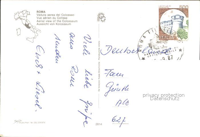old postcard Roma Rom Fliegeraufnahme Kolloseum postalisch gelaufen Erhaltung siehe scans