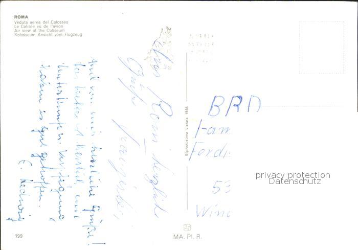 Roma Rom Fliegeraufnahme Kolosseum postalisch nicht gelaufen Erhaltung siehe scans