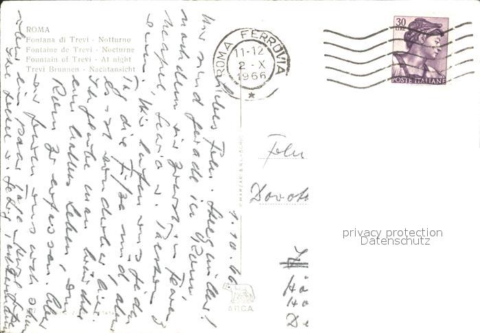 old postcard Roma Rom Fontana di Trevi Notturno postalisch gelaufen Erhaltung siehe scans