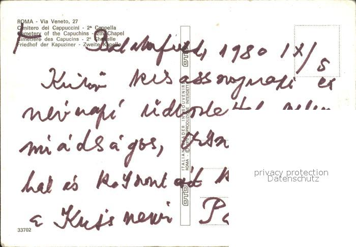 Roma Rom Friedhof der Kapuziner Zweite Kapelle postalisch nicht gelaufen Erhaltung siehe scans