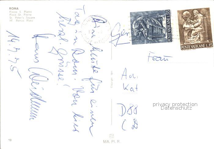 old postcard Roma Rom Heiliger Petrus Platz postalisch gelaufen Erhaltung siehe scans