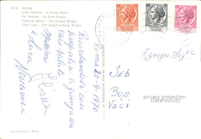 old postcard Roma Rom Isola Tiberina Il Ponte Rotto postalisch gelaufen Erhaltung siehe scans