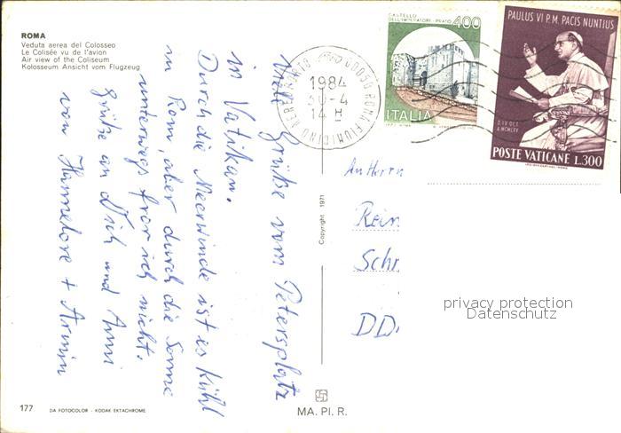 old postcard Roma Rom Kolosseum Fliegeraufnahme postalisch gelaufen Erhaltung siehe scans