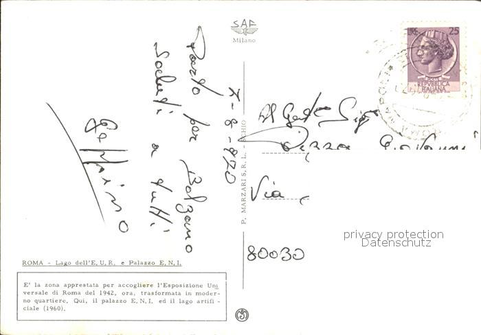 old postcard Roma Rom Lago dell EUR e Palazzo ENL postalisch gelaufen Erhaltung siehe scans