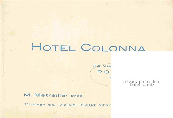 74039448 ROMA Rom Lazio IT Hotel Colonna Stadtplan postalisch nicht gelaufen Werbekarte (keine Postkarte) Erhaltung siehe scans [FriedD77] KatCode: 11240