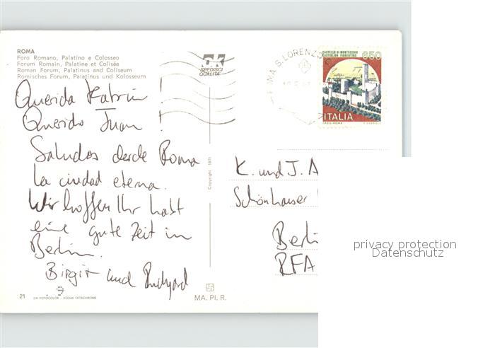 old postcard Roma Rom Palatino Colosseo Foro Romano Notturno postalisch gelaufen Erhaltung siehe scans
