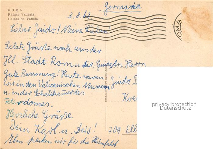 old postcard Roma Rom Palazzo Venezia Monumento postalisch gelaufen Erhaltung siehe scans [FriedD77]