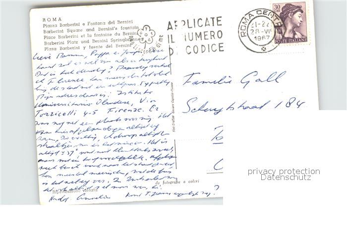 old postcard Roma Rom Piazza Barberini Fontana del Bernini postalisch gelaufen Erhaltung siehe scans