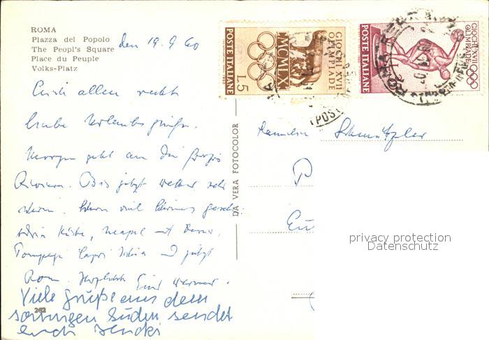old postcard Roma Rom Piazza del Popolo Volksplatz postalisch gelaufen Erhaltung siehe scans