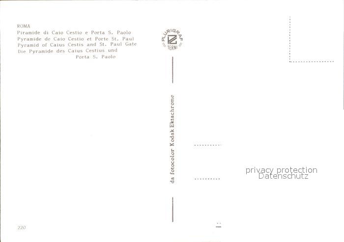 Roma Rom Piramide Caio Cestio Porta S. Paolo postalisch nicht gelaufen Erhaltung siehe scans