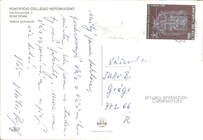 old postcard Roma Rom Pontificio Collegio Nepomuceno postalisch gelaufen Erhaltung siehe scans
