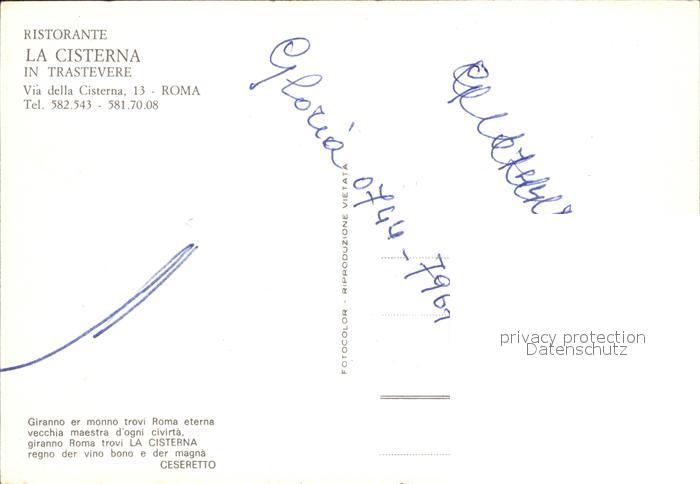 Roma Rom Ristorante La Cisterna postalisch nicht gelaufen Erhaltung siehe scans