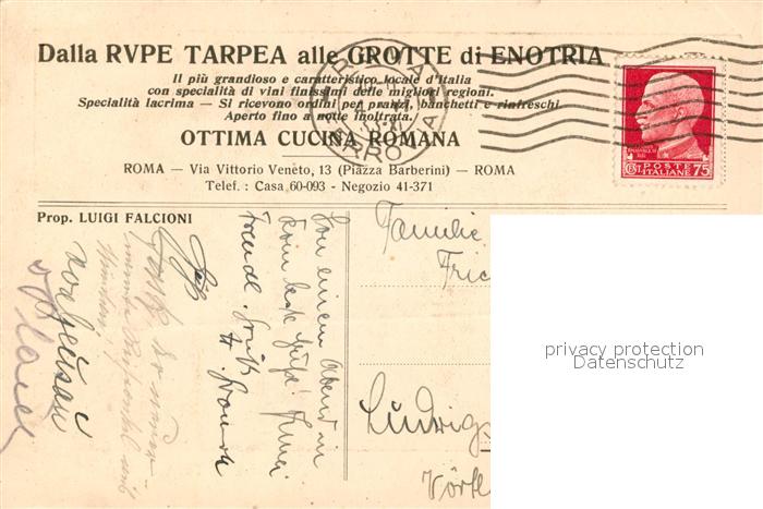 old postcard Roma Rom Ristorante-Locale Rupe Tarpea Grotte di Enotria postalisch gelaufen Erhaltung siehe scans [PaolaD17]