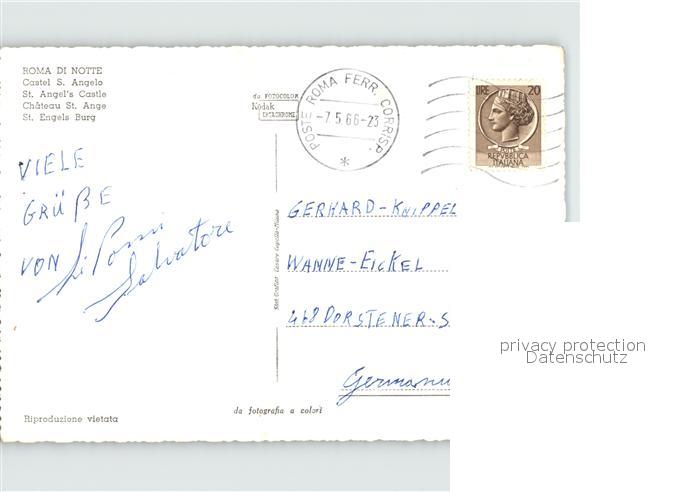 old postcard Roma Rom Sankt Engels Burg bei Nacht postalisch gelaufen Erhaltung siehe scans
